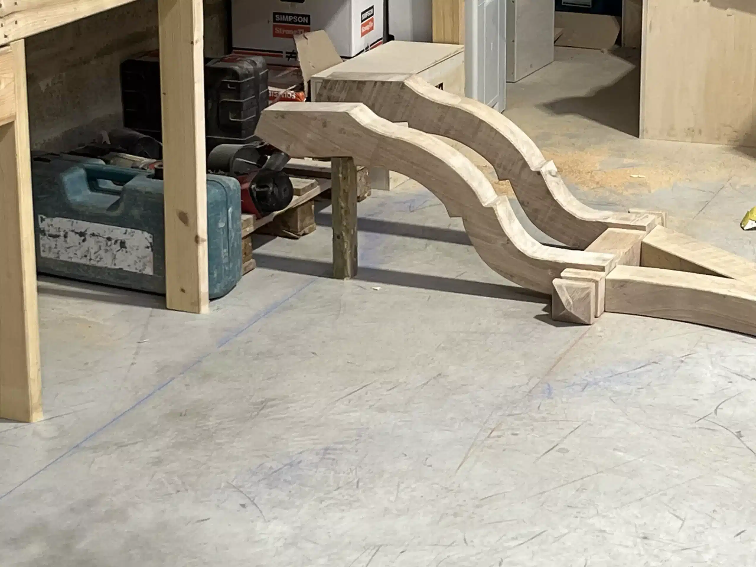 Construction d’un préau traditionnel à Séné, en Douglas, assemblage queue d’arronde.