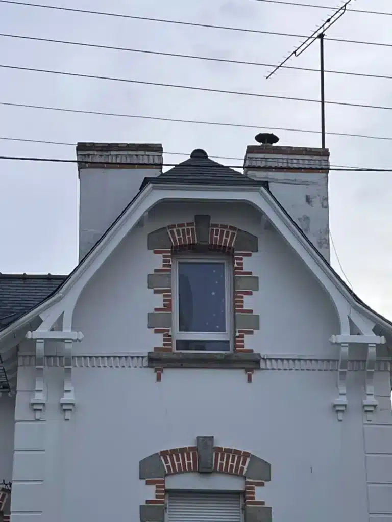 Reproduction à l’identique d’une ferme en bois sculptée, caractéristique de l’architecture bretonne de cette maison de ville.